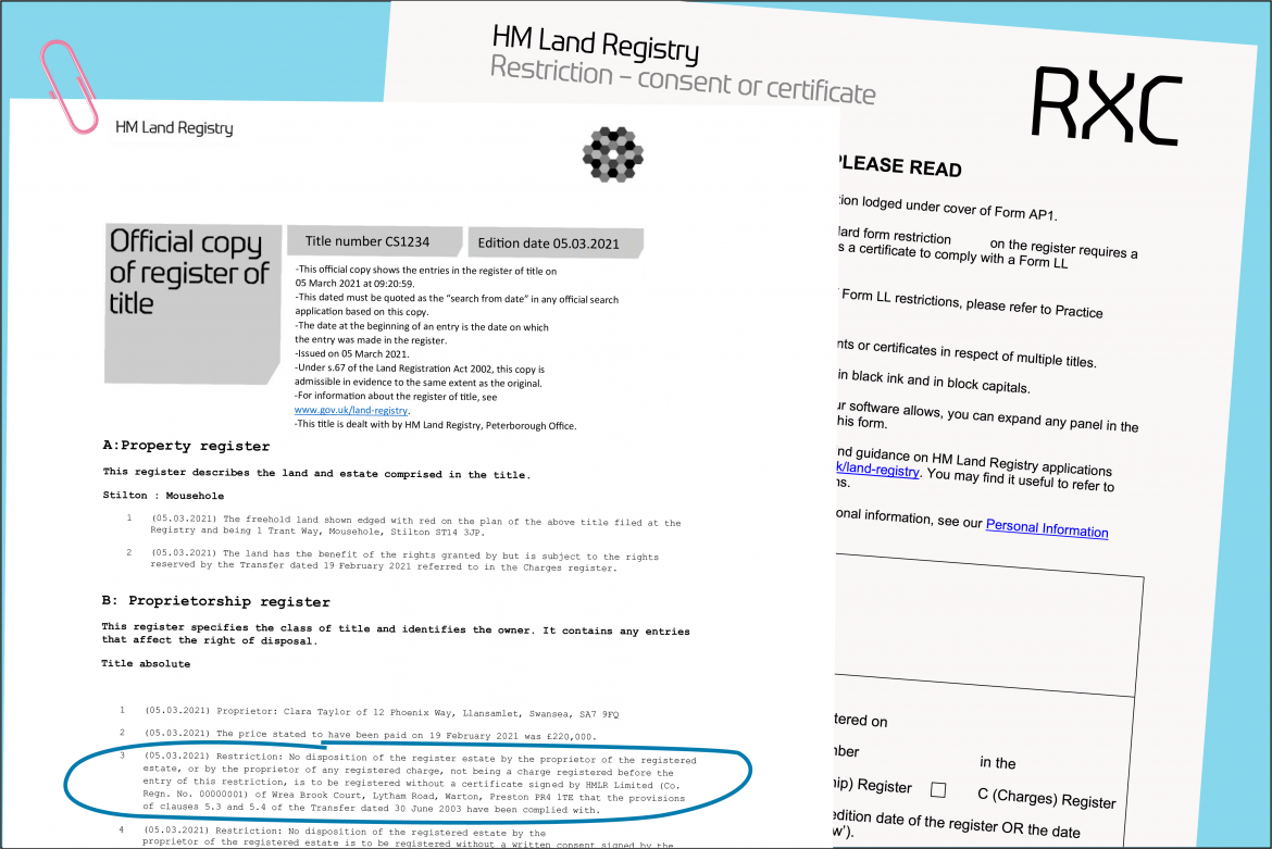 So, after consulting widely, we have devised form RXC to use when a consent or a certificate is needed to comply with a restriction in the register. You can find it on the GOV.UK website. Use of the form is optional but has the advantage of ensuring consents and certificates are correct first time.